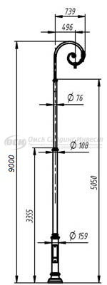 Опора фонарная ОСИ Арбат-1 декоративная однорожковая с монтажной панелью, без закладной и светильника (9м)