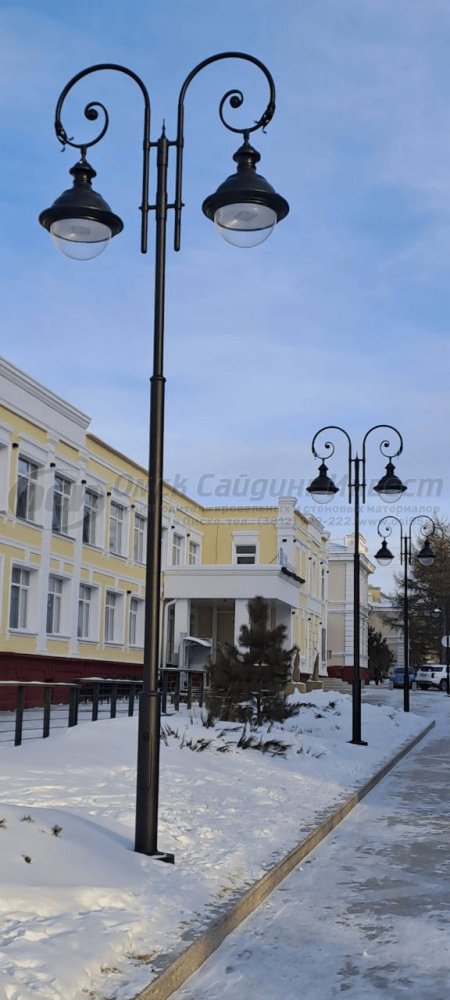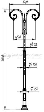 Опора фонарная ОСИ Арбат-2 декоративная двухрожковая с монтажной панелью, без закладной и светильника (6м)